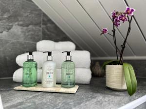 This en suite room boasts its own self-contained kitchen and a private garden entrance. It also features a 32-inch flat-screen TV and a designer en suite shower room. The room includes twin beds, along with a sofa. Wifi is available in the room.