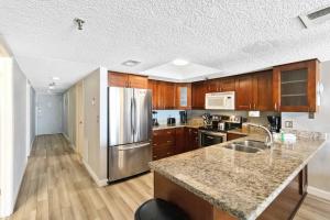 Apartament w Beachfront - Ocean Views - Beach Place #108 oferuje 3 sypialnie, 2 łazienki oraz w pełni wyposażoną kuchnię z lodówką i zmywarką.