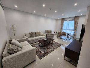 W apartamencie zapewniono balkon, kilka sypialni (2), salon z telewizorem z płaskim ekranem, kuchnię ze standardowym wyposażeniem, takim jak lodówka i zmywarka, a także kilka łazienek (2) z wanną z hydromasażem. Z obiektu Beachfront 2BHK apartment at Al Mouj roztacza się widok na morze.