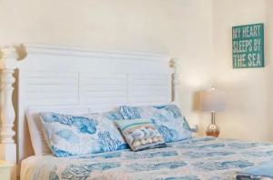 Klimatyzowany apartament Beachfront Condo w Ocean Views and Pool posiada sypialnię i telewizor.