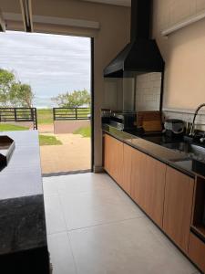 The spacious holiday home features a balcony, 1 bedroom, a living room and a well-equipped kitchen. A flat-screen cable TV is available at Beachfront house in Lagoinha. The property offers garden views.