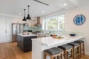 This holiday home provides a private pool. The air-conditioned holiday home has 6 bedrooms and 5 bathrooms with a bath and a hairdryer. Guests will find a stovetop, a refrigerator, a dishwasher and an oven in the kitchen. The holiday home also features a barbecue. The holiday home offers a TV with streaming services, a washing machine, a coffee machine, tumble dryer as well as sea views. The unit is furnished with 7 beds.