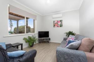 This apartment features a formal lounge area with sea views, The main bedroom has a queen-size bed and the second bedroom has a double bed and a single bed and wardrobes in each bedroom. The second bedroom is semi detached, although still part of the main home, so it may not be suitable for young children or elderly guests as it is away from the main bedroom, bathroom and lounge. It is accessible either via the entrance and garage or from the rear yard. There is a double fold-out bed in the lounge room as an alternative to the 2nd bedroom. We have had lots of families of 5 stay whom have really enjoyed the accommodation as it is very affordable for families rather than having to book a 2nd room in other accommodation making it much more expensive. There is a full-size kitchen/dining area, bathroom, toilet and a separate laundry. There is a flat-screen TV and a large fenced backyard.