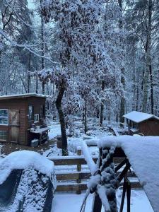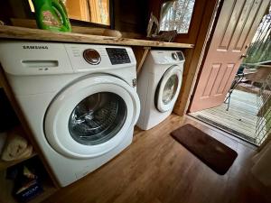 This holiday home offers a fireplace. Featuring a private entrance, this air-conditioned holiday home comprises 2 bedrooms and 1 bathroom with a hairdryer. The holiday home's kitchen, which features a refrigerator and a microwave, is available for cooking and storing food. The holiday home provides a washing machine, a tea and coffee maker, tumble dryer, a flat-screen TV, as well as garden views. The unit offers 2 beds and 1 futon.