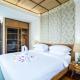 Las villas cuentan con zona de salón comedor de planta abierta y cocina de mármol. La zona de estar está decorada con obras de arte e incluye madera de madera moderna y Smart TV. Los dormitorios tienen aire acondicionado, suelo de madera, caja fuerte y TV. Algunos baños incluyen bañera.