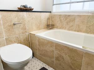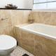 Cet appartement comprend 1 chambre, un salon avec une télévision à écran plat, une cuisine équipée, ainsi que 2 salles de bains avec une douche et une baignoire.