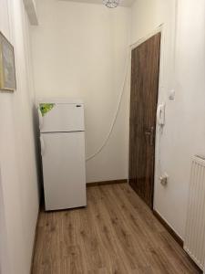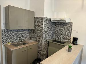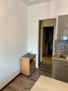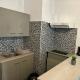 Cet appartement avec climatisation comporte 1 chambre, une télévision à écran plat, ainsi qu’une cuisine avec un réfrigérateur et une plaque de cuisson.