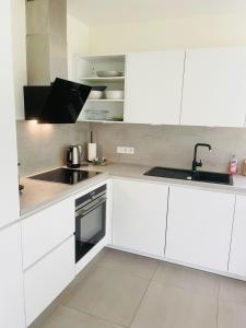 Apartament w obiekcie oferuje taras, sypialnię, salon oraz w pełni wyposażoną kuchnię. Wyposażenie obiektu Beautiful Flat with garden view, terrace and parking-105 obejmuje telewizor z płaskim ekranem.