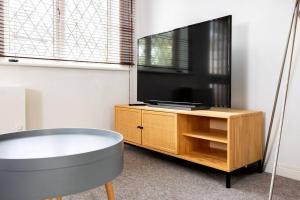 The 1-bedroom holiday home has a living room with flat-screen TV, and a fully equipped kitchen with a fridge. Towels and bed linen are available in the holiday home at Beautiful House by Station with Private Parking.