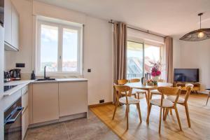 Apartmán Beautiful renovated apartment, balcony, private parking zahrnuje 2 ložnice, plně vybavenou kuchyň s lednicí a myčkou a 1 koupelnu se sprchou. V apartmánu Beautiful renovated apartment, balcony, private parking nechybí posezení, pračka a koupelna s toaletními potřebami zdarma.
