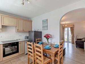The holiday home features 2 bedrooms, 1 bathroom and a kitchen. Guests can make meals in the kitchen that comes with a refrigerator, kitchenware and an oven. This holiday home has a high chair for children, heating, a TV and garden views. The unit provides 3 beds.
