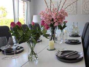 Camere: 1The holiday home features 3 bedrooms, 2 bathrooms and a kitchen. The kitchen is equipped with a dishwasher, kitchenware and an oven. The holiday home provides a TV, a washing machine, a high chair for children, heating as well as garden views. The unit offers 4 beds.