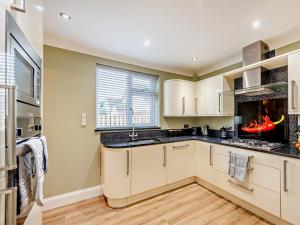 The holiday home has 3 bedrooms, 2 bathrooms and a kitchen. Meals can be prepared in the well-fitted kitchen, which features a refrigerator, a dishwasher, kitchenware and an oven. The holiday home features a washing machine, a high chair for children, heating, a TV, as well as garden views. The unit is furnished with 4 beds.