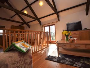 The holiday home features 2 bedrooms, 2 bathrooms and a kitchen. The well-equipped kitchen has a refrigerator, a dishwasher and kitchenware. The holiday home provides a washing machine, a high chair for children, heating, a TV, as well as garden views. The unit provides 3 beds.