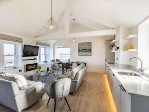 The holiday home has 4 bedrooms, 4 bathrooms and a kitchen. Guests will find a refrigerator, a dishwasher, kitchenware and an oven in the well-equipped kitchen. The holiday home also comes with a barbecue. The holiday home features a washing machine, a high chair for children, heating, a TV, as well as garden views. The unit has 4 beds.