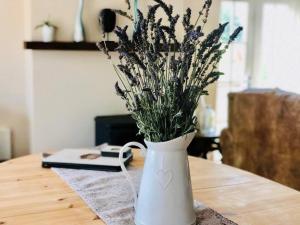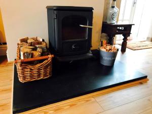 This holiday home features a fireplace. The holiday home has 2 bedrooms, 1 bathroom and a kitchen. In the kitchen, guests will find a refrigerator, a dishwasher, kitchenware and an oven. The holiday home features a washing machine, a high chair for children, heating, a TV with satellite channels, as well as garden views. The unit has 3 beds.