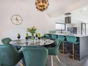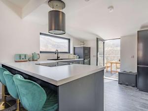 This holiday home features a fireplace. The holiday home has 3 bedrooms, 2 bathrooms and a kitchen. Guests will find a refrigerator, a dishwasher, kitchenware and an oven in the well-equipped kitchen. The holiday home also comes with a barbecue. The holiday home features a TV, a washing machine, a high chair for children, heating as well as garden views. The unit has 4 beds.