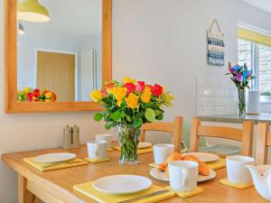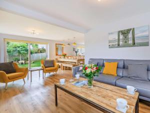 The holiday home has 5 bedrooms, 3 bathrooms and a kitchen. Guests will find a refrigerator, a dishwasher, kitchenware and an oven in the fully equipped kitchen. The holiday home also includes a barbecue. The holiday home features a TV, a washing machine, a high chair for children, heating as well as garden views. The unit has 5 beds.
