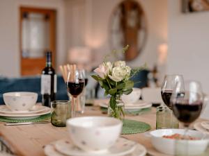 Guests will have a special experience as this holiday home features a fireplace. The holiday home features 2 bedrooms, 2 bathrooms and a kitchen. Guests will find a refrigerator, a dishwasher, kitchenware and an oven in the kitchen. The holiday home also has a barbecue. The holiday home offers a washing machine, a high chair for children, heating, a TV, as well as garden views. The unit offers 3 beds.