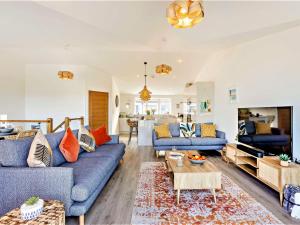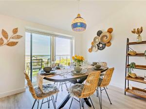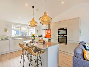 The holiday home features 3 bedrooms, 2 bathrooms and a kitchen. Guests will find a refrigerator, a dishwasher, kitchenware and an oven in the well-fitted kitchen. The holiday home also has a barbecue. The holiday home offers a TV, a washing machine, a high chair for children, heating as well as garden views. The unit offers 4 beds.