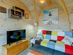 The holiday home has 1 bedroom, 1 bathroom and a kitchen. The holiday home's kitchen, which features a refrigerator and kitchenware, is available for cooking and storing food. The holiday home features a washing machine, a high chair for children and heating. The unit has 1 bed.