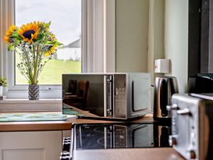 The holiday home features 2 bedrooms, 1 bathroom and a kitchen. The kitchen is equipped with a refrigerator, kitchenware and an oven. The holiday home provides a TV, a washing machine, a high chair for children, heating as well as garden views. The unit offers 2 beds.