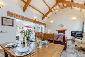 This holiday home features a fireplace. Boasting a private entrance, this holiday home features 2 bedrooms, 1 bathroom and a kitchen. A kitchen fitted with a dishwasher, kitchenware and an oven is available for cooking and storing food. The holiday home features a TV, a washing machine, a barbecue, a high chair for children as well as garden views. The unit has 3 beds.