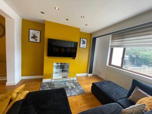 Meals can be prepared in the kitchen, which comes with a stovetop, a refrigerator, a dishwasher and kitchenware. The spacious holiday home provides a washing machine, a private entrance, a coffee machine, a dining area and a flat-screen TV with streaming services. The unit offers 7 beds.
