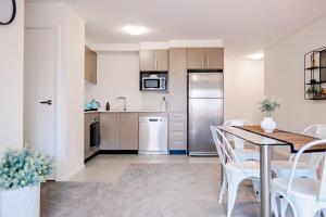 Apartament 1 Bedroom Apartment In Braddon z balkonem oferuje sypialnię, salon z TV, łazienkę z prysznicem oraz kuchnię z lodówką i zmywarką. Z okien obiektu 1 Bedroom Apartment In Braddon roztacza się widok na miasto. Ręczniki i pościel są dostępne w apartamencie.
