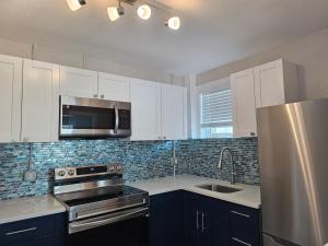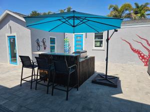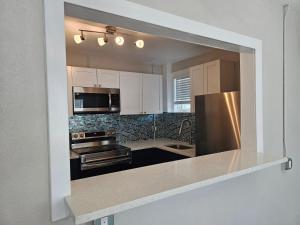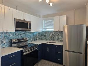 Das klimatisierte 1 Bedroom Block off Madeira Beach -2 besteht aus einem separaten Schlafzimmer, einer voll ausgestatteten Küche mit Kühlschrank und Backofen sowie einem Badezimmer. Es gibt einen TV.