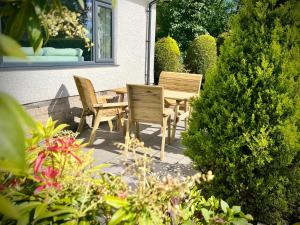This holiday home offers a fireplace. Featuring a private entrance, this holiday home comprises 1 living room, 3 separate bedrooms and 1 bathroom with a bath and a shower. The well-equipped kitchen features a stovetop, a refrigerator, a dishwasher and kitchenware. The holiday home provides a flat-screen TV with streaming services, a washing machine, a dining area, a wardrobe as well as garden views. The unit offers 3 beds.