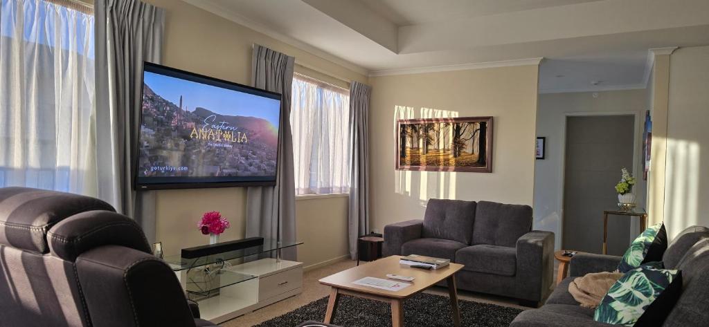 This spacious holiday home comes with 1 living room, 3 separate bedrooms and 2 bathrooms with a bath and a shower. Guests will find a stovetop, a refrigerator, a dishwasher and kitchenware in the fully equipped kitchen. The holiday home also includes a barbecue. The air-conditioned holiday home features a flat-screen TV with streaming services, a washing machine, a tea and coffee maker, a seating area as well as a quiet street view. The unit is furnished with 3 beds.