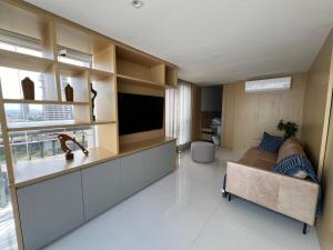 Zur Einrichtung des 3 bedrooms Apt with Amazon river view gehören ein Schlafzimmer, ein Flachbild-TV und eine Küche.