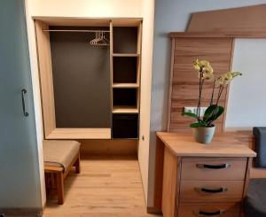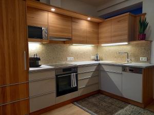 Die Unterkunft beim Tischler bietet ihren Gästen eine Terrasse, Bergblick, einen Sitzbereich, einen Satelliten Flachbild-TV, eine voll ausgestattete Küche mit einem Kühlschrank und einem Geschirrspüler sowie ein eigenes Badezimmer mit einer Dusche und einem Haartrockner. Es gibt einen Ofen, eine Mikrowelle und eine Herdplatte sowie eine Kaffeemaschine und einen Wasserkocher.