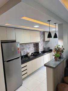 L'appartamento di Belíssimo Apto a 2 km da Litorânea prevede 2 camere da letto, TV a schermo piatto e cucina.