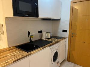 The studio provides a seating area, a dining area, as well as a private bathroom boasting a shower and a bidet. Guests can make meals in the kitchen that features a stovetop, a refrigerator, kitchenware and a microwave. The air-conditioned studio features a flat-screen TV, a washing machine, a private entrance, a coffee machine as well as sea views. V této ubytovací jednotce se nachází 1 postel.