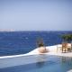 This suite has either 2 separate rooms or an open-floor plan with a king bedroom and a living room separated by a curved rosewood screen. This spacious suite is located on the first floor and includes 2 terraces with views to Mykonos Town, the Aegean Sea and the Belvedere Pool. The living room has a sofa, a multifunctional millwork installation and a beverage center with a built-in freezer and ice machine maker, a TV station, and a dining table. The living room terrace is ideal for sunbathing and lounging. It also features a large bathroom including a large shower plate, a free-standing tub and a comfortable dressing area with a handcraft decorative wall mirror. Please note that this room type cannot accommodate any extra beds.