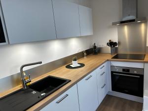 Zimmer: 1This apartment includes 1 bedroom, kitchen, a terrace and 1 bathroom with a hairdryer. In the well-fitted kitchen, guests will find a stovetop, a dishwasher, an oven and a microwave. The apartment offers a washing machine, a private entrance, a tea and coffee maker, heating, as well as a flat-screen TV. The unit has 1 bed.