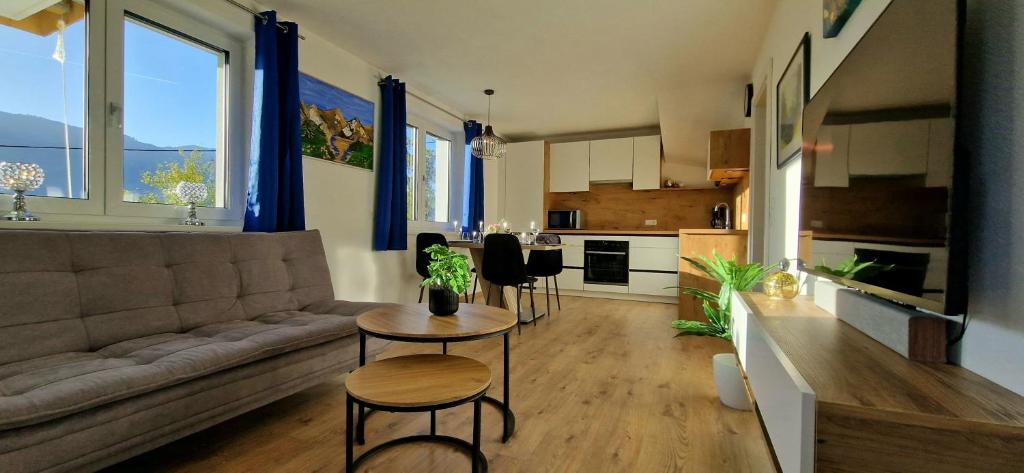 Offrant une vue sur la montagne depuis sa terrasse, cet appartement de l'établissement possède 2 chambres, un salon, une télévision à écran plat, une salle de bains avec douche et une cuisine équipée d'un lave-vaisselle et d'un réfrigérateur. Des serviettes et du linge de lit sont disponibles à Bergwelt Hart.