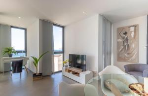 The spacious apartment with a terrace and sea views features 2 bedrooms, a living room, a TV, an equipped kitchen with a dishwasher and an oven, and 2 bathrooms with a bidet. Towels and bed linen are featured at Bernia al Mar - Costa CarpeDiem. Bernia al Mar - Costa CarpeDiem includes an outdoor dining area.
