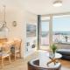 Featuring sea views and a balcony, this apartment at the property includes 1 bedroom, a living room, a TV, a bathroom with a shower, and a kitchen with oven and dishwasher.