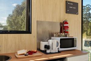 Guests will find a stovetop, a refrigerator, kitchenware and a microwave in the kitchen. The mobile home also provides guests with a barbecue. The mobile home provides air conditioning, a private entrance, a tea and coffee maker, as well as outdoor furniture. The unit offers 1 bed.