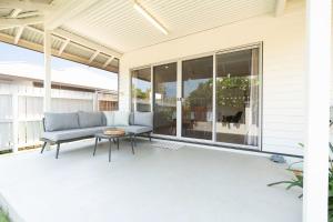 The air-conditioned holiday home has 3 bedrooms, 2 bathrooms and a kitchen. Guests will find a dishwasher and a microwave in the kitchen. The holiday home also features a barbecue. The holiday home features outdoor furniture. The unit is furnished with 3 beds.