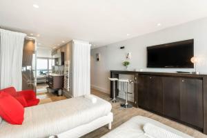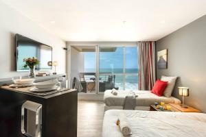 This studio provides a pool with a view. In the kitchenette, guests will find a stovetop, a refrigerator, kitchenware and a microwave. This studio includes a flat-screen TV with streaming services, a private bathroom as well as a terrace with sea views. The unit offers 2 beds.