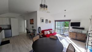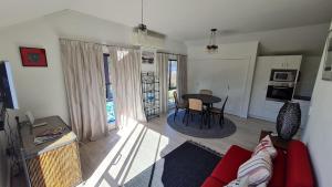 Featuring a private entrance, this air-conditioned holiday home is comprised of 1 living room, 2 separate bedrooms and 1 bathroom with a shower and a hairdryer. In the well-fitted kitchen, guests will find a stovetop, a refrigerator, an oven and a microwave. This holiday home features heating, flat-screen TV, garden views, as well as chocolate for guests. V této ubytovací jednotce je k dispozici 3 postele.