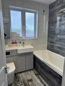 This holiday home comes with 5 bedrooms, a kitchen and 3 bathrooms with a bath. The holiday home's kitchen is available for cooking and storing food. This holiday home has a washing machine, an electric kettle, a flat-screen TV and garden views. V této ubytovací jednotce se nachází 6 postelí.