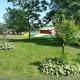 The site includes a furnished terrace with barbeque facilities, a campfire, and gardens including a trampoline. Guests can also enjoy the small on-site zoo.