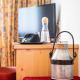 Les chambres de style tyrolien disposent d'un balcon, d'un coin salon, d'une télévision par satellite, d'un coffre-fort et d'une salle de bains avec sèche-cheveux.
