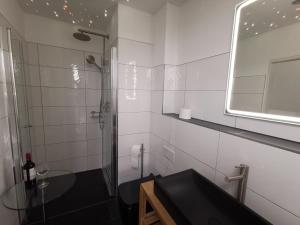 Cet appartement se compose de 1 chambre, d'un salon, d'une cuisine entièrement équipée avec un réfrigérateur et une machine à café, ainsi que de 2 salles de bains avec une douche. Une télévision est à disposition.