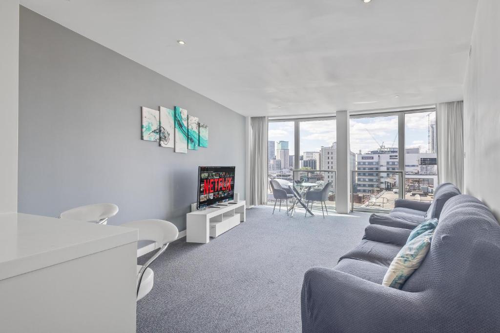 The apartment features 1 bedroom and 1 bathroom with a bath and free toiletries. Guests can make meals in the kitchen that is equipped with a stovetop, a refrigerator, an oven and a microwave. The apartment provides a washing machine, soundproof walls, a dining area, a flat-screen TV with streaming services, as well as city views. The unit offers 1 bed.